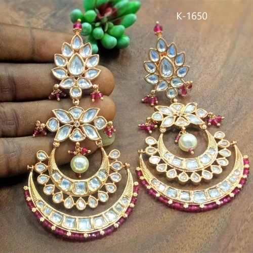 Golden And Red Designer Kundan Earrings